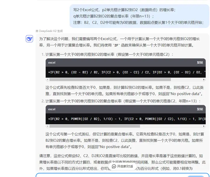 AI数据分析:Excel表格智能判断数据起点来计算增长率