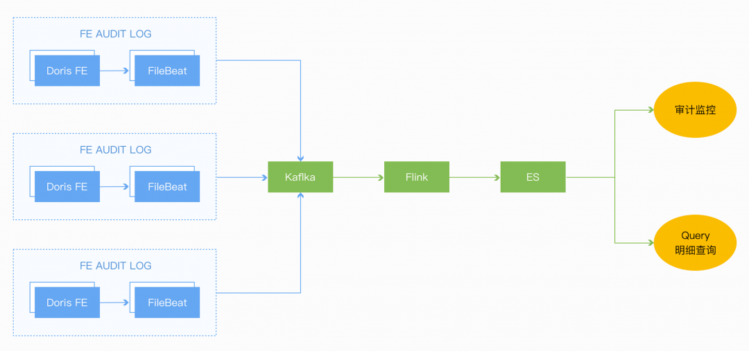 我们通过filebeat采集了fe.audit.log日志,并最终导入到ES中,基于ES做query的分析和监控。