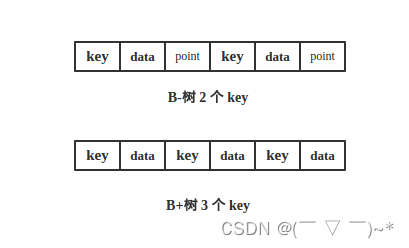 从上图可以看出相同大小的区域,B-树仅有 2 个 key,而B+树有 3 个 key。