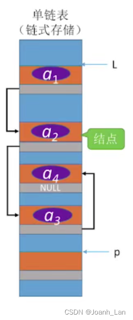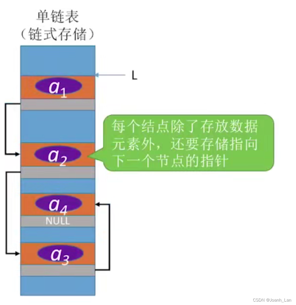要表示一个单链表时,只需声明一个头指针L,指向单链表的第一个结点