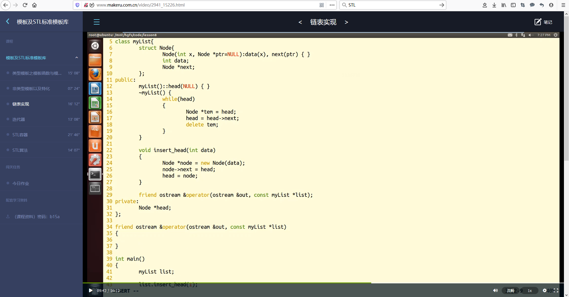 华清讲C++ SLT标准模板库时 用C++写了个链表实现。