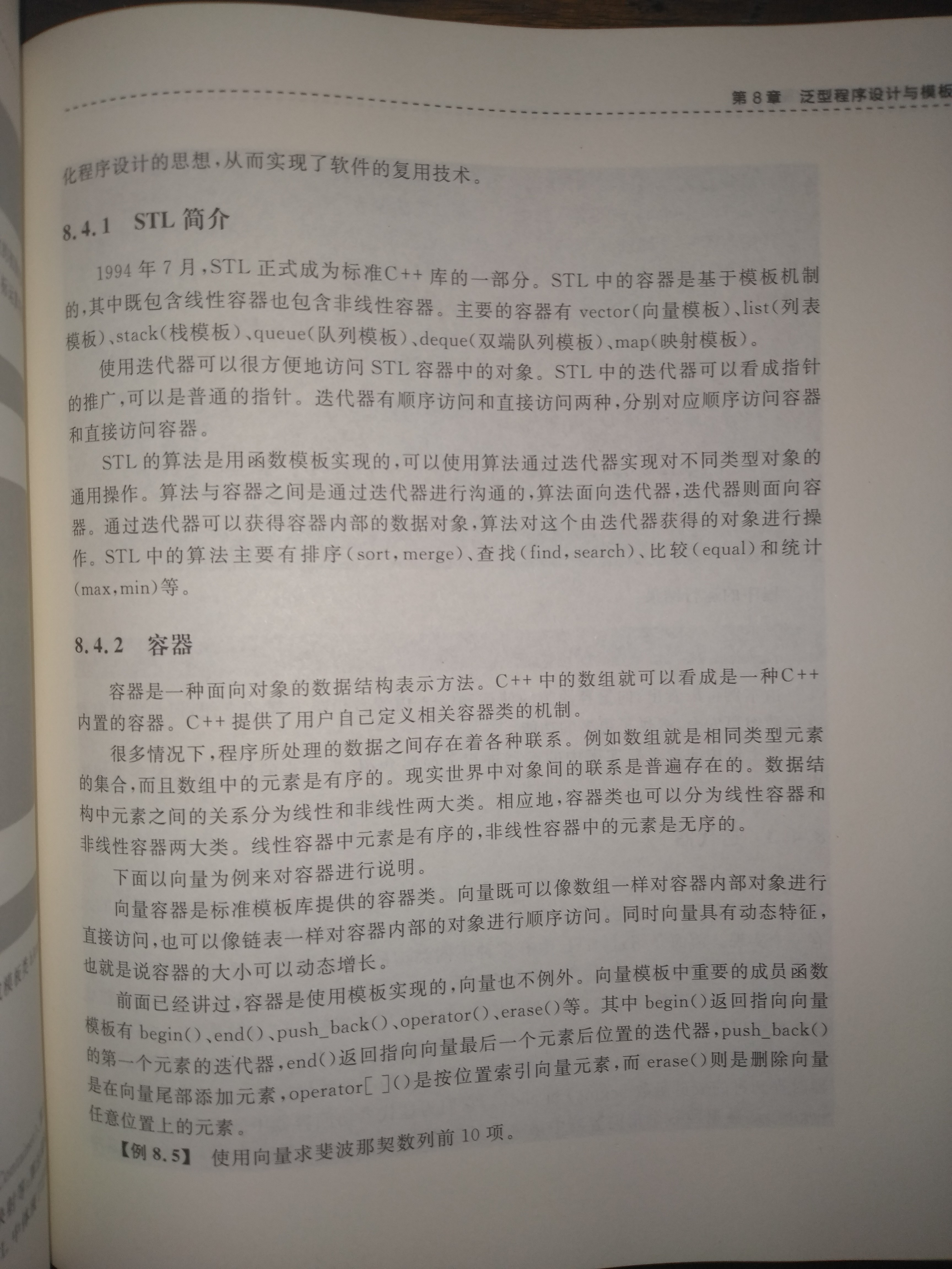 之前买的一本《C++程序设计基础教程》对STL库的介绍,可以看到基本就是数据结构那些东西。我现在很庆幸之前花了半个月听和写数据结构,也谢谢华清。