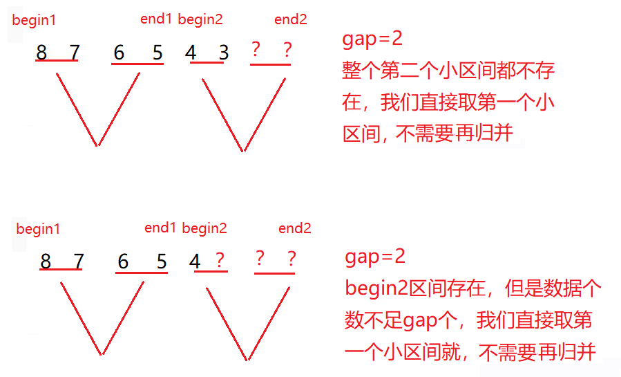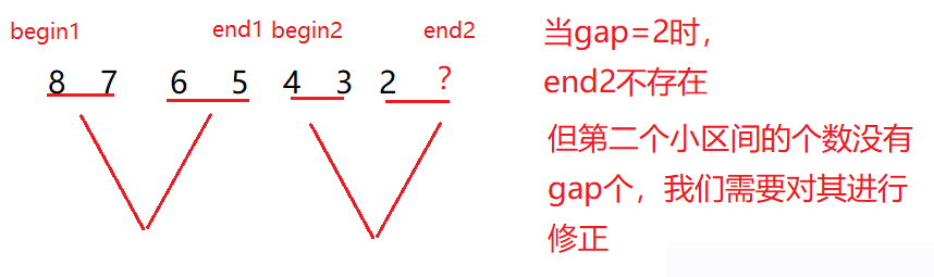 但是我们这是理想情况下(偶数个),还有特殊的边界控制,当数据个数不是偶数个时,我们所分的gap组,势必会有越界的地方