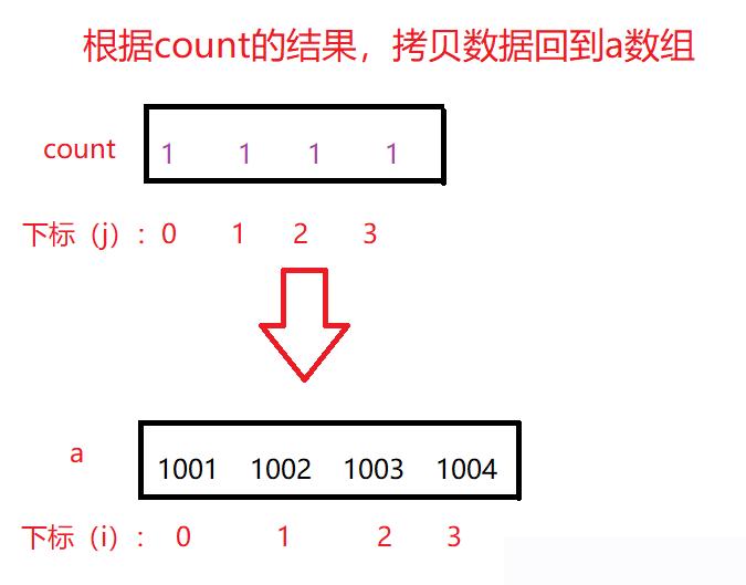 count[j]中数据是几,说明该数出现了几次,是0就不用拷贝