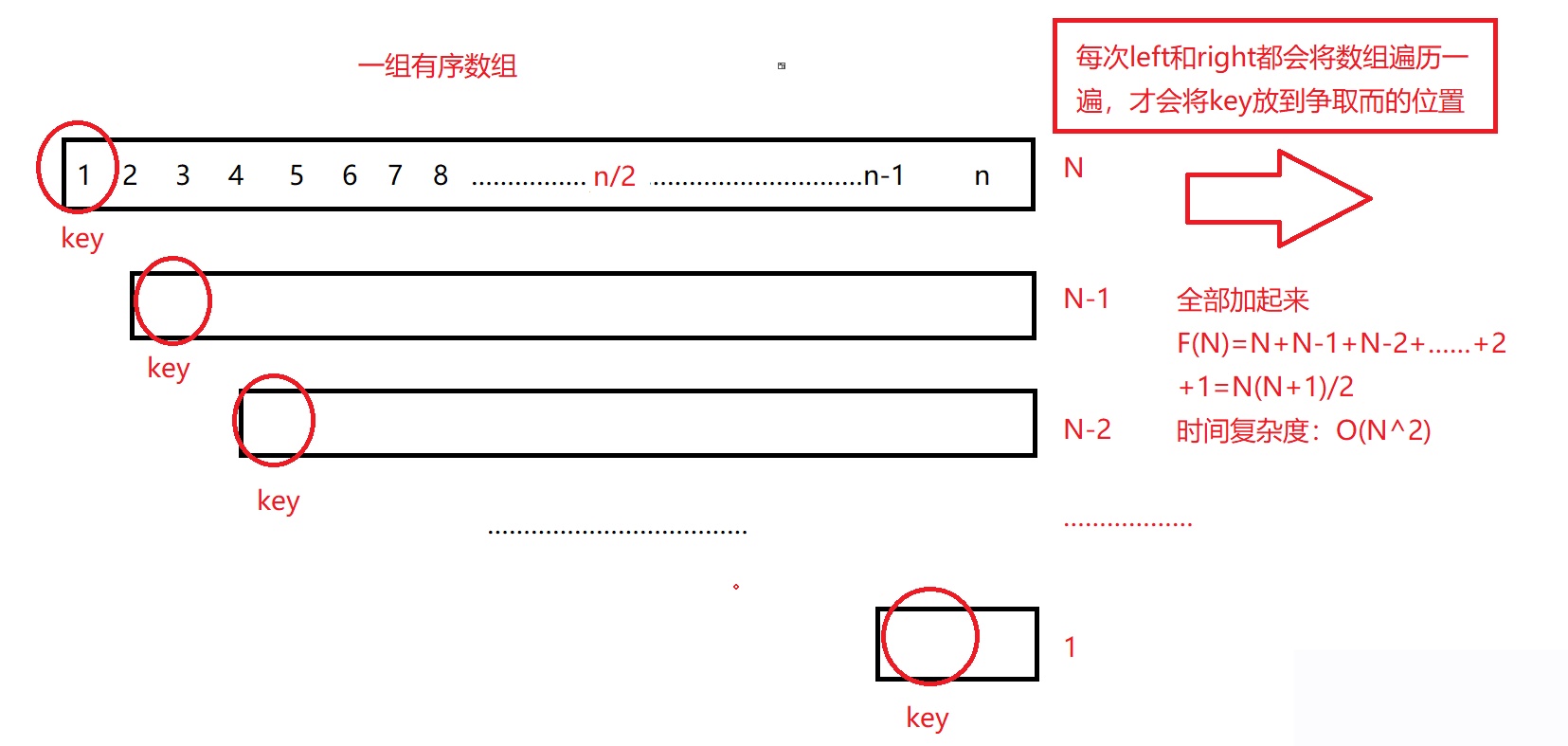 最坏的情况下,每次插入一个数字,前面的数字都要挪动一下,一共需要挪动1+2+3+……+n=n(n+1)/2
