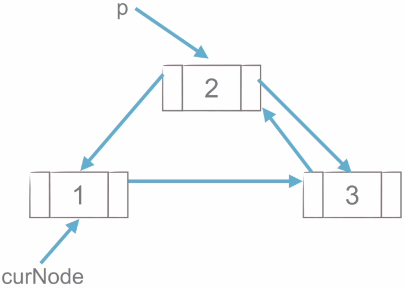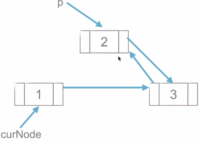 (1)p.next = curNode.next 让p.next指针指向curNode下一个节点