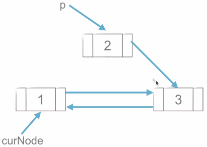 (2)curNode.next.prior = p 让curNode下一个节点的prior指针指向p