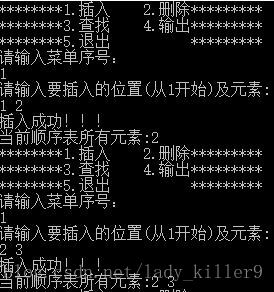 printf(“请输入要插入的位置(从1开始)及元素:\n”);