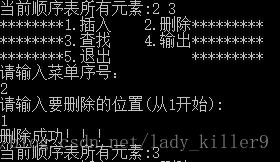 //删除功能函数 调用ListDelete函数完成顺序表的删除 调用PrintList函数显示插入成功后的结果