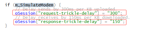 首先,我们要找到相关的配置脚本,然后使用ctrl+f快速查找内容——m_SimulateModem,之后更改下图中框选的两个参数为你的预期值。对于下图中所展示的值,我们可以简单来计算一下它的上下行速率。