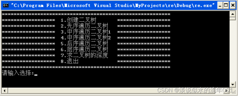 cout << "7、求二叉树的深度" << endl;