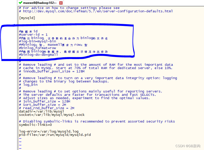 [maxwell@hadoop102 ~]$ sudo vim /etc/my.cnf