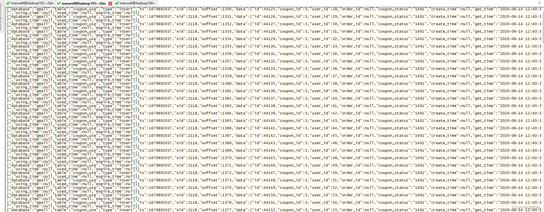 [maxwell@hadoop102 bin]$ /opt/module/maxwell/bin/maxwell --config /opt/module/maxwell/config.properties --daemon