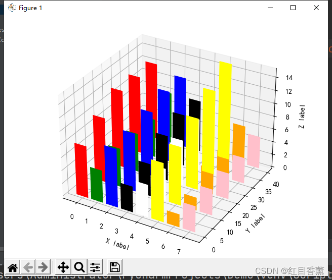 ax.bar(x, y5, 40, zdir='y', color=clr)