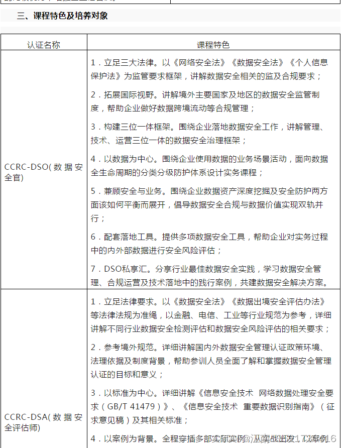 相比之下,CCRC-DSA专注于培育专业的数据安全评估、审计和咨询分析人才,以支持组织更好地实施《数据安全法》规定的风险评估和安全检测工作,确保符合《信息安全技术 网络数据处理安全要求》等相关标准规范。