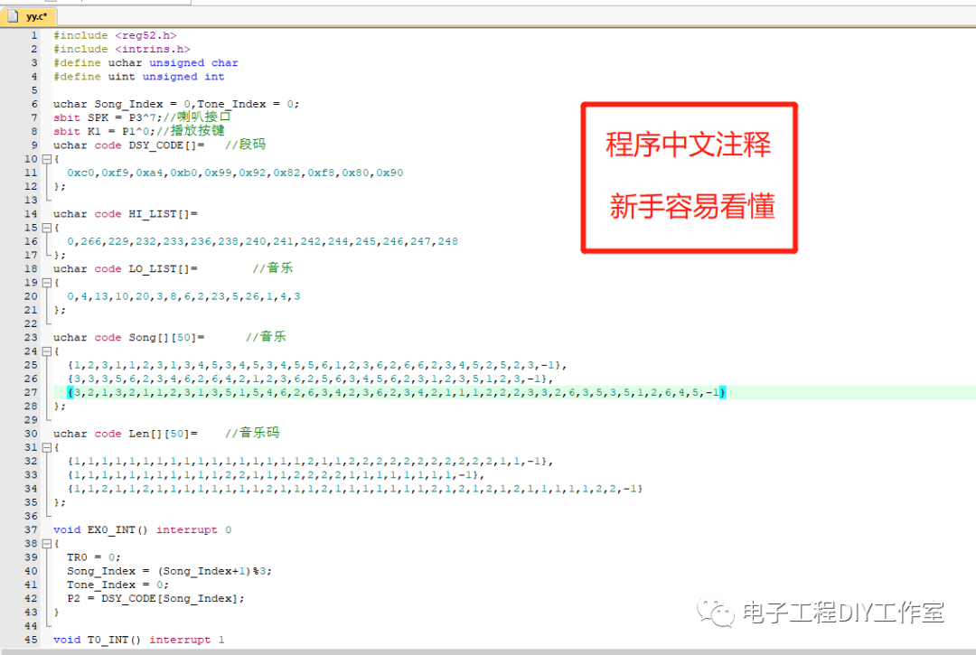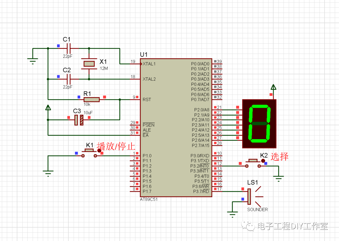 采用51系列单片机,采用PWM控制蜂鸣器播放多种音乐,采用独立按键来进行切换音乐,数码管显示当前是第几首,程序有中文注释,非常容易看懂,全套仿真资料齐全。116-基于51单片机的多种音乐盒播放器Proteus仿真系统(仿真+源码+全套资料)uchar code LO_LIST[]=//音乐。uchar code Song[][50]=//音乐。uchar code Len[][50]=//音乐码。