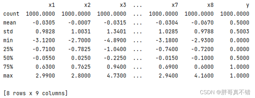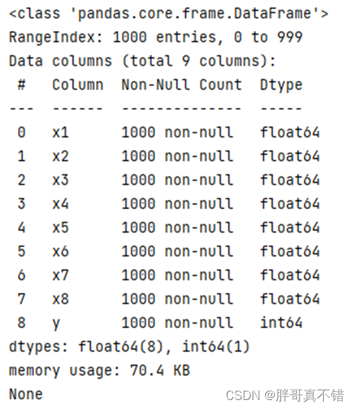 从上图可以看到,总共有9个变量,数据中无缺失值,共1000条数据。