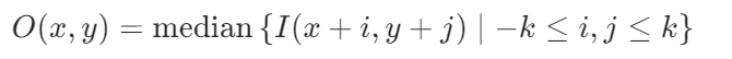 原理:用像素邻域内所有像素的中值替换中心像素,有效抑制椒盐噪声。