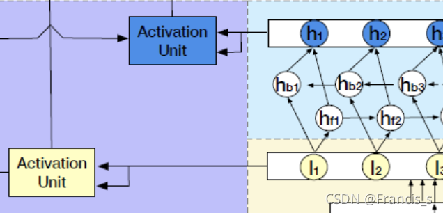 我们可以看出这个激活层是有两个输入的,一个是做完BI-LSTM的隐层状态,一个是做完平均池化的Embedding。