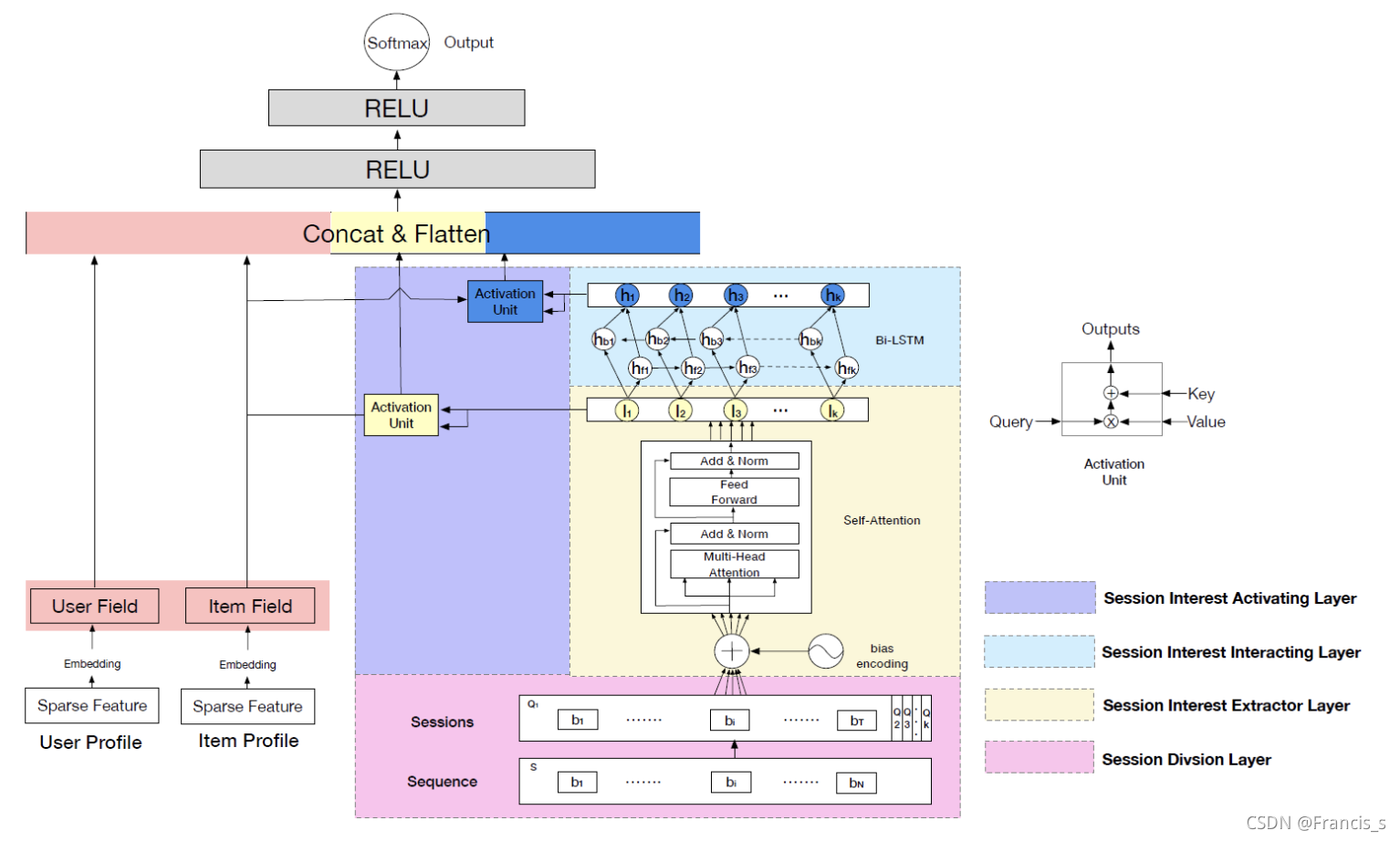 网络层级依次是:Session Division Layer(会话划分层),会话兴趣提取层,会话交互层以及会话兴趣局部激活层。