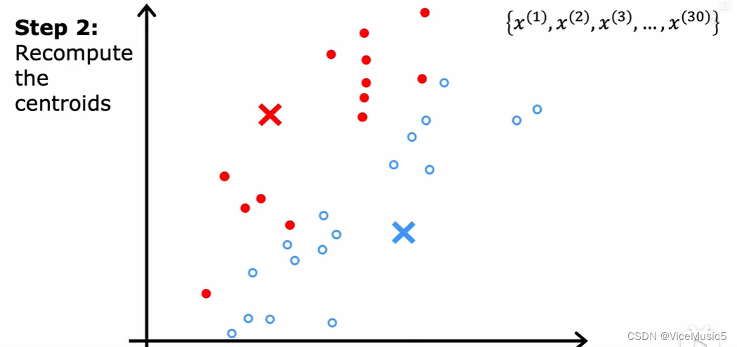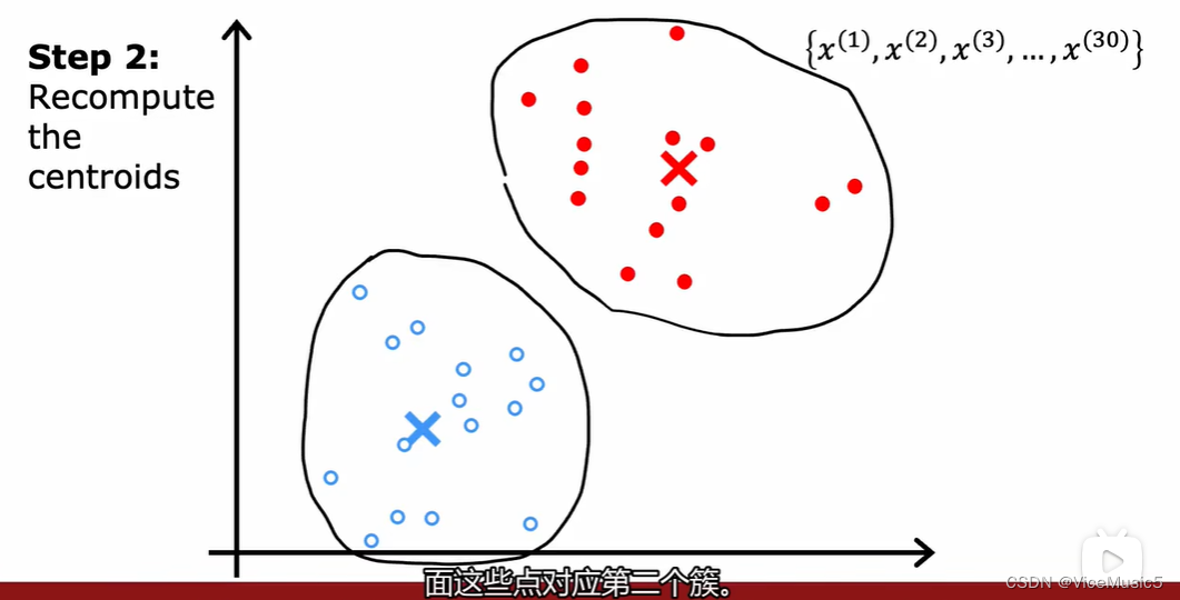 对于每一个集群,我们通过各个分量之间计算平均点的方式,计算出这个集群的集群质心应该在什么位置上