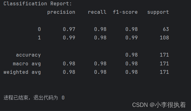 分类报告提供了每个类别的精确度、召回率和F1分数,以及整体的宏平均(macro avg)和加权平均(weighted avg)指标。这些指标可以帮助我们更全面地评估模型的性能。