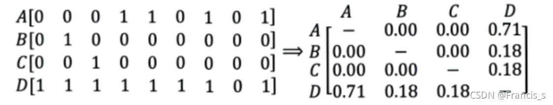 - 然后计算矩阵两列之间向量的相似性,构建一个n*n的相似度矩阵,这应该是一个对称矩阵,然后某一列/某一行代表着当前这个物品和其余所有物品的相似度