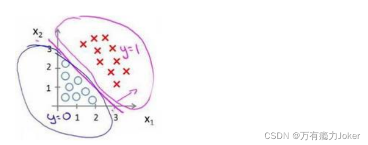 当 h θ ( x ) > = 0.5 h_{\theta }(x)>=0.5 hθ(x)>=0.5时,预测 y = 1 y=1 y=1