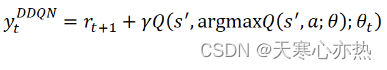 表示目标网络的模型参数。上式会导致 Q 函数的过度预测, 因此更改 DDQN ,将目标值