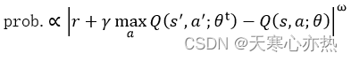 对于一个重放缓冲区, 其中所有的样本都具有相同的被采样概率。然而, 这并不是非常有效, 因为有些样本比其他样本更重要。这就是为什么需要先验经验重放, 其中具有更高时间差 (TD) 误差的样本以比其他样本更高的概率进行采样。第一次将样本添加到重放缓冲区时, 将设置最大优先级值, 以确保缓冲区中的所有样本至少采样一次。此后, TD 误差用于确定要采样的经验概率, 计算公式如下: