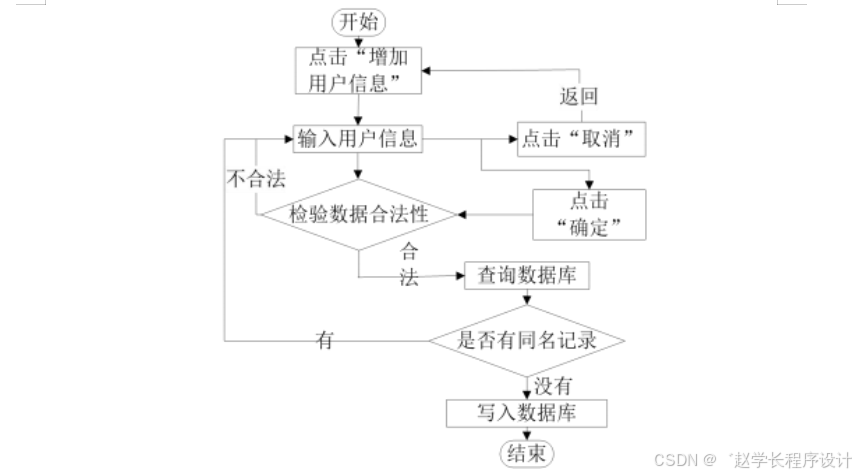 在注册流程中,用户在Vue前端填写必要信息(如用户名、密码等)并提交。前端将这些信息通过HTTP请求发送到Java后端。后端处理这些信息,检查用户名是否唯一,并将新用户数据存入MySQL数据库。完成后,后端向前端发送注册成功的确认,前端随后通知用户完成注册。这个过程实现了新用户的数据收集、验证和存储。如图5-1所示: