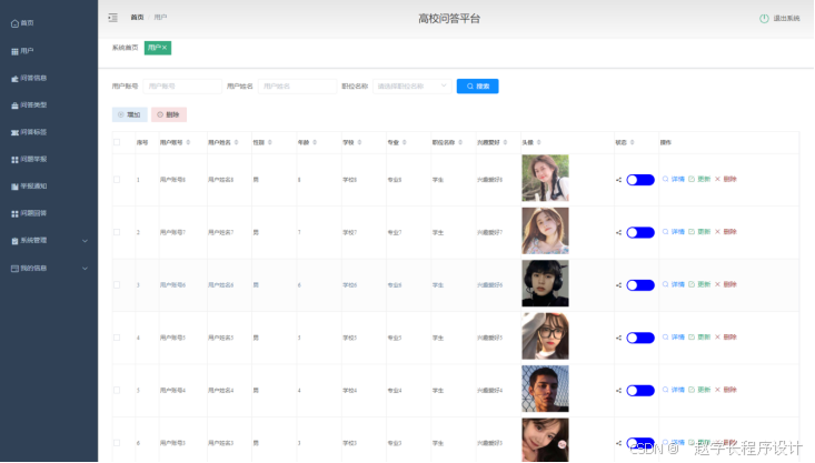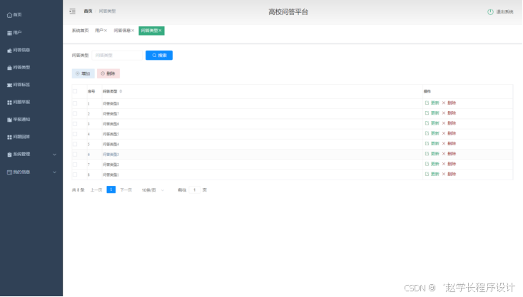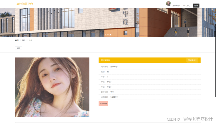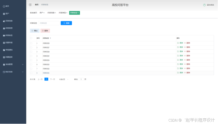 本课题要求实现一套高校问答平台,系统主要包括管理员和用户两大功能模块。