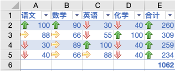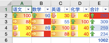 iconset() { var activeSheet = this.activeSheet; var iconSetRule = new GC.Spread.Sheets.ConditionalFormatting.IconSetRule(); // 演示demo先写死区域 iconSetRule.ranges([new GC.Spread.Sheets.Range(0,0, 5, 5)]); // IconSetType图标志的类型:箭头,圆圈和execl 打通的,excel有哪些这这边就支持哪些 iconSetRule.iconSetType(GC.Spread.Sheets.ConditionalFormatting.IconSetType.threeArrowsColored); var iconCriteria = iconSetRule.iconCriteria(); iconCriteria[0] = new GC.Spread.Sheets.ConditionalFormatting.IconCriterion( true, GC.Spread.Sheets.ConditionalFormatting.IconValueType.number, 60 );(<60) iconCriteria[1] = new GC.Spread.Sheets.ConditionalFormatting.IconCriterion( true, GC.Spread.Sheets.ConditionalFormatting.IconValueType.number, 90 );(60<= <90) iconCriteria[2] = new GC.Spread.Sheets.ConditionalFormatting.IconCriterion( true, GC.Spread.Sheets.ConditionalFormatting.IconValueType.number, 90 );(>=90) iconSetRule.reverseIconOrder(false); iconSetRule.showIconOnly(false); activeSheet.conditionalFormats.addRule(iconSetRule); }