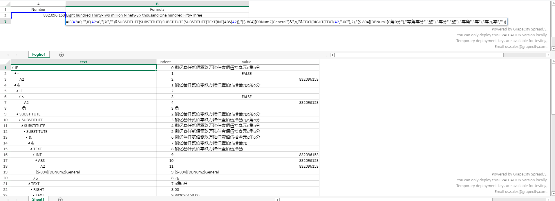 对于嵌套公式计算的实现,SpreadJS 在底层建立起了 AST 树来解析用户设置公式的计算逻辑,从官方示例的代码来看,公式底层建立了一套 Expression,并且有对应的 public 接口可供调用,如图: