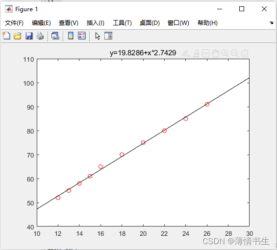 title(['y=',num2str(b0),'+','x*',num2str(b)]);