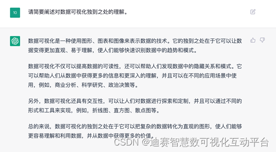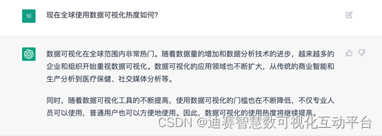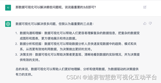 这款当下最先进最爆火的智能工具对数据可视化有什么看法呢,来看数据可视化平台与ChatGPT的对话。