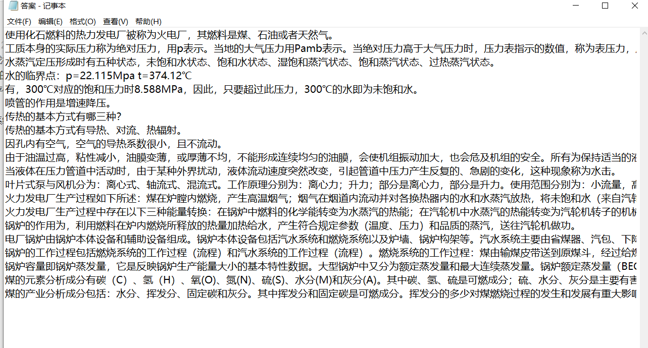 由于作者是学电气的,这里以发电厂知识文本来构建问答系统