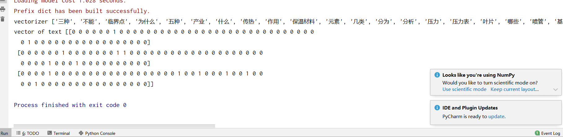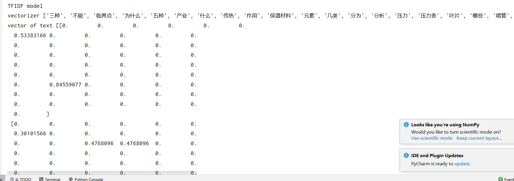 bow = tfidf_vectorizer.transform([input])#对输入进行tf-idf模型
