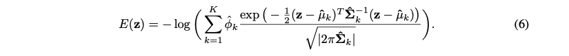 在获得GMM参数后,可由论文中的公式(6)写出似然函数。损失函数参照公式(7),注意有三项,分别是网络输出的重构误差,似然函数损失以及用来防止矩阵计算不可逆的项。