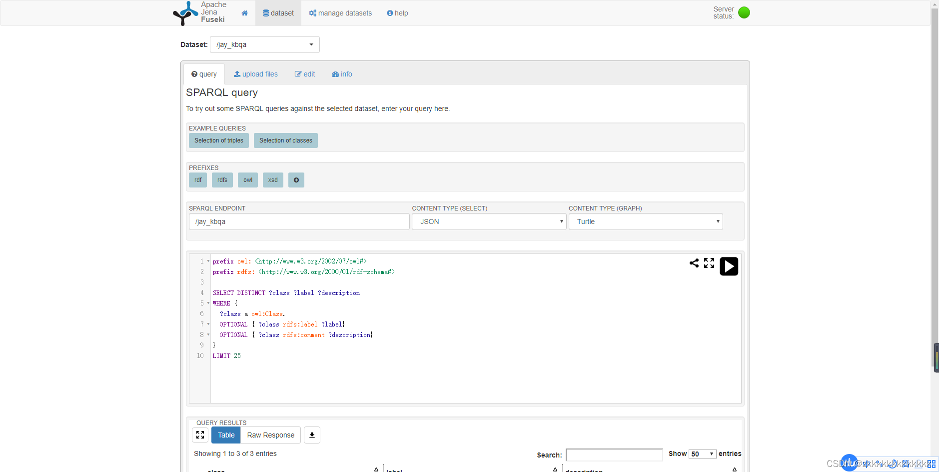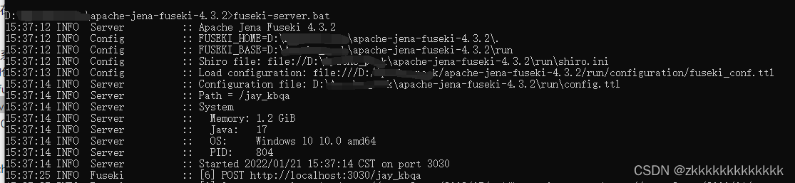 声明本博文是在使用如下开源项目时总结的方法https://github.com/zhangtao-seu/Jay_KG,文中一部分使用了作者 README.md上的原话。目录下载apache-jena和apache-jena-fuseki配置环境变量启动fuseki的web服务数据准备owl文件owl转换为nt文件RDF文件转换成tdb文件fus...