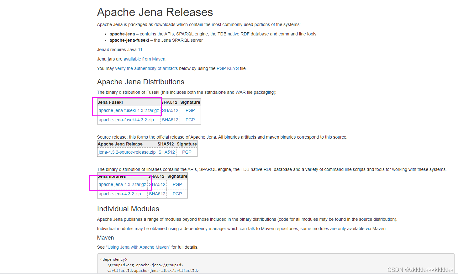 因为我们的系统是运行在Apache-jena-fuseki的服务上的,所以先下载两个包。网址:Apache Jena - Apache Jena Releases