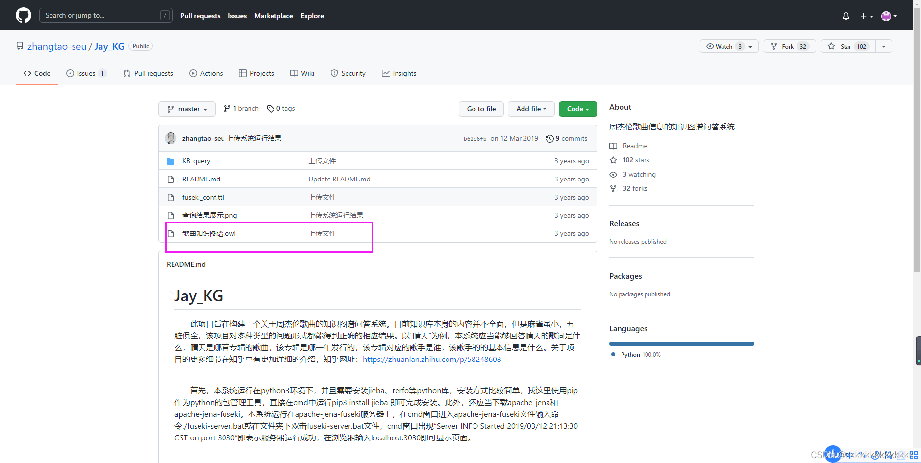 本博文是在使用开源项目时,根据开源项目作者README.md介绍的流程而编写的,具体源码见如下网址:https://github.com/zhangtao-seu/Jay_KG ,文中部分白话使用了作者README.md上的原话。