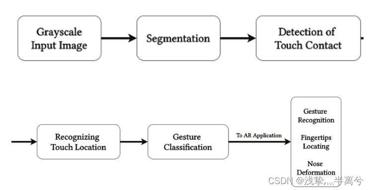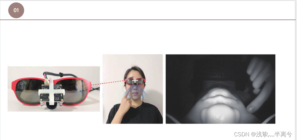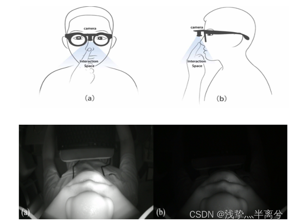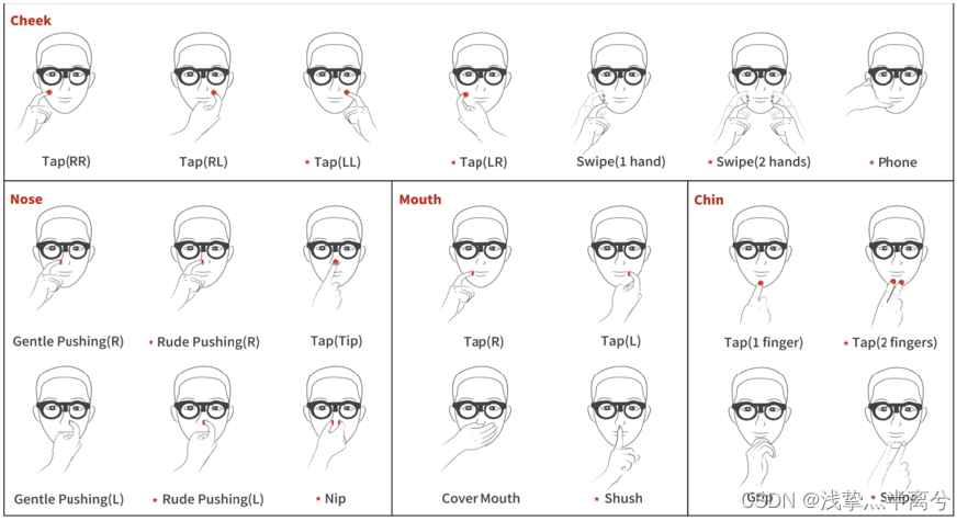 这是一篇由清华团队于2021年5月份发表于CHI上面的一篇高质量论文。题为:在具有向下摄像头视觉的 AR 眼镜上实现手对脸手势交互的文章,介绍了 FaceSight,就是一种⽤于 AR 眼镜的基于计算机视觉的手对脸手势感应技术。 它将红外摄像头固定在 AR 眼镜的桥架上,以提供对下⽅⾯部和手部行为的额外感知能力(图 1)。检测手脸接触,并训练卷积神经网络(CNN)模型对手对脸手势进行分类。输入特征包括手势识别、鼻子变形估计和连续指尖运动。