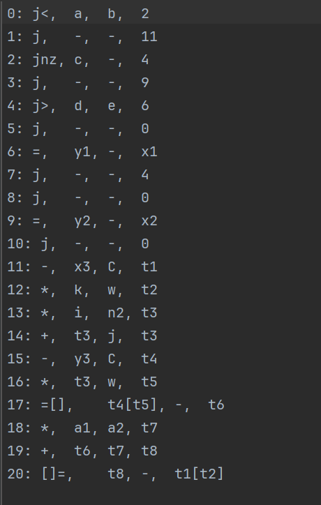 print("\n生成的四元式:")