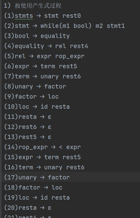 1) 按使用产生式过程