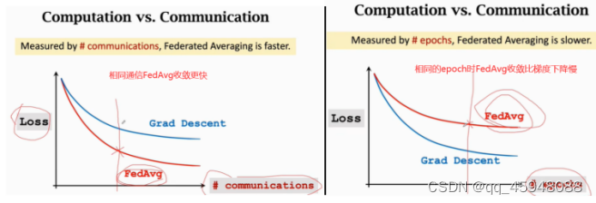 - 联邦学习通信代价很大(所以减小通信次数很重要),需要进行远距离信息传输,远远大于计算代价,传统分布式机器学习结点是链接起来的,比如网线、高速宽带,传输代价非常小