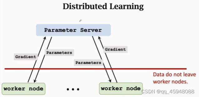 - 用户对自己的设备和数据有绝对的控制权,用户可以随时停止自己的设备参与训练,分布式机器学习Worker会受到Server的控制,Worker接受Server的指令,比如交换数据将数据打散(实现数据独立同分布)