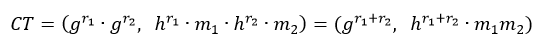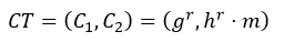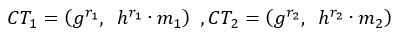 其中r是加密过程中选的一个随机数,g是一个生成元,h是公钥,m为对应的明文。