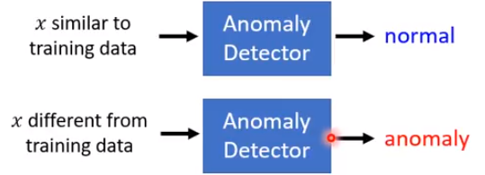 异常检测要做的是,给定一个训练数据集,找一个函数,对于给定的输入x,判断x是否是和给定数据集的数据相近