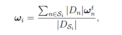 第 3 步。边缘模型聚合。在此步骤中,每个边缘服务器 i 从其连接的设备 Si 接收更新的模型参数,然后将它们平均为